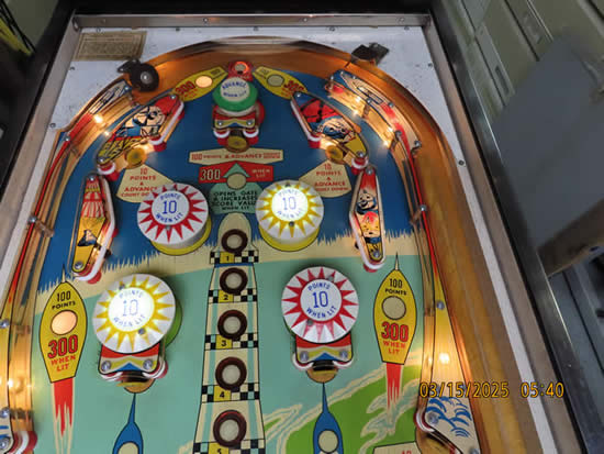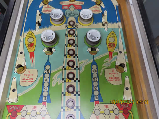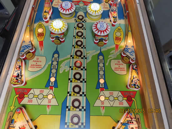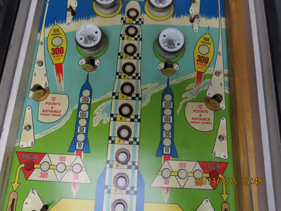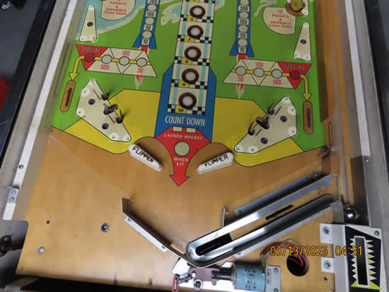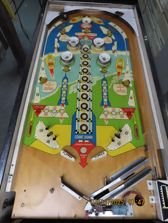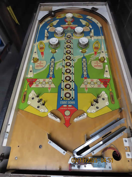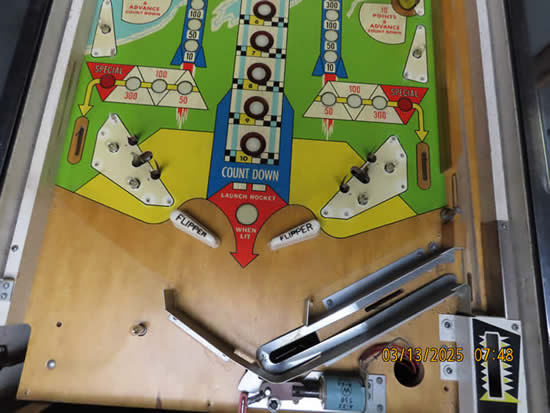 This game was given a complete check up and Reconditioning, We remove all playfield plastic's, light bulbs and posts, clean everything removed in the ultrasonic cleaner, clean the playfield, polish it, and then reassemble the game, check all switches for proper adjustment, then we replaced all the bulbs and rubber bands, then checked to make sure there are no lamps out, check switches to make sure they work properly.
